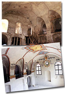 Women's galleries of the Neuschul in Trebic (the Czech Republic) before and after restoration.